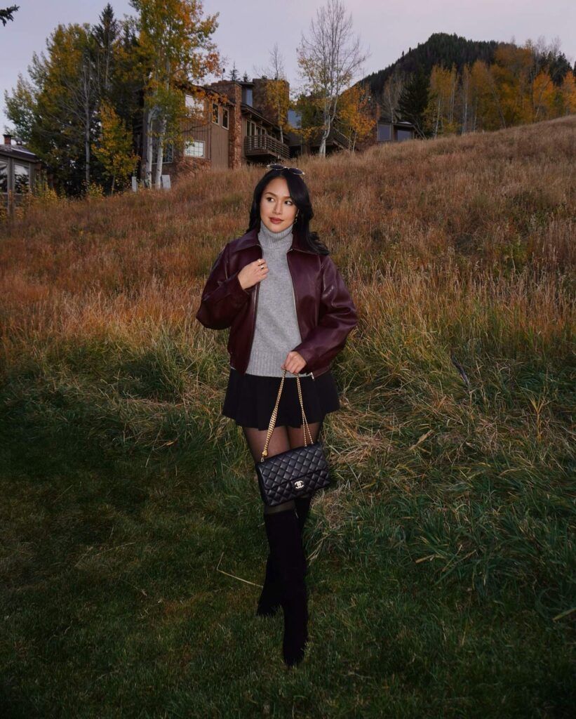 PS. If you’re pairing your jacket with a skirt, you can layer your knee-high boots outfit with winter leggings for warmth.